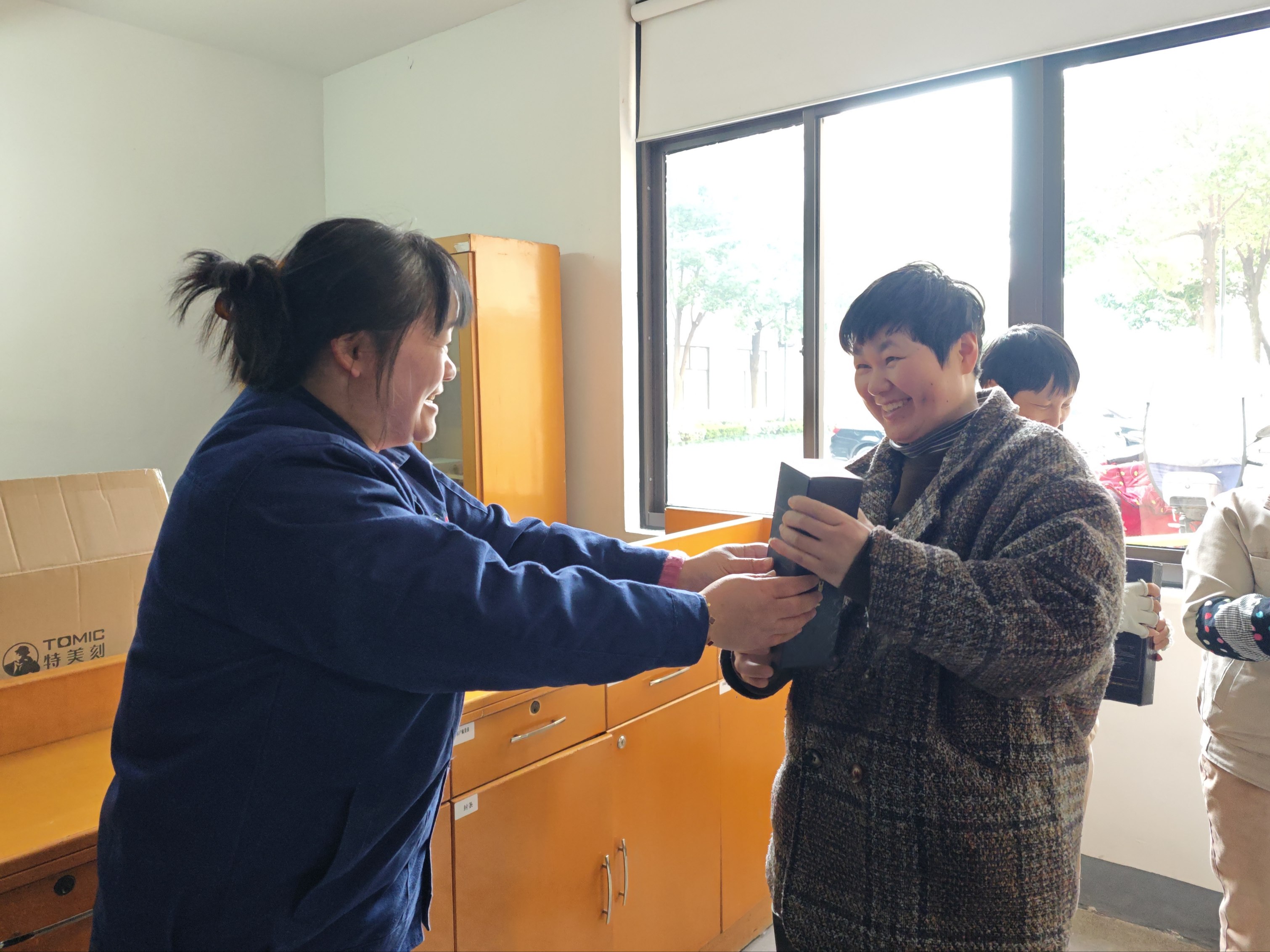 活动当天,提前采购的高品质保温杯整齐亮相。纯色简约的杯身上,每位女员工的姓名通过激光刻印清晰呈现,既保留了日常饮水的实用性,又以“一人一物一姓名”的专属设计,传递企业对员工个体的珍视。发放环节中,各部门主管化身“暖心使者”,将这份独一无二的礼物递至女员工手中,并送上节日祝福。